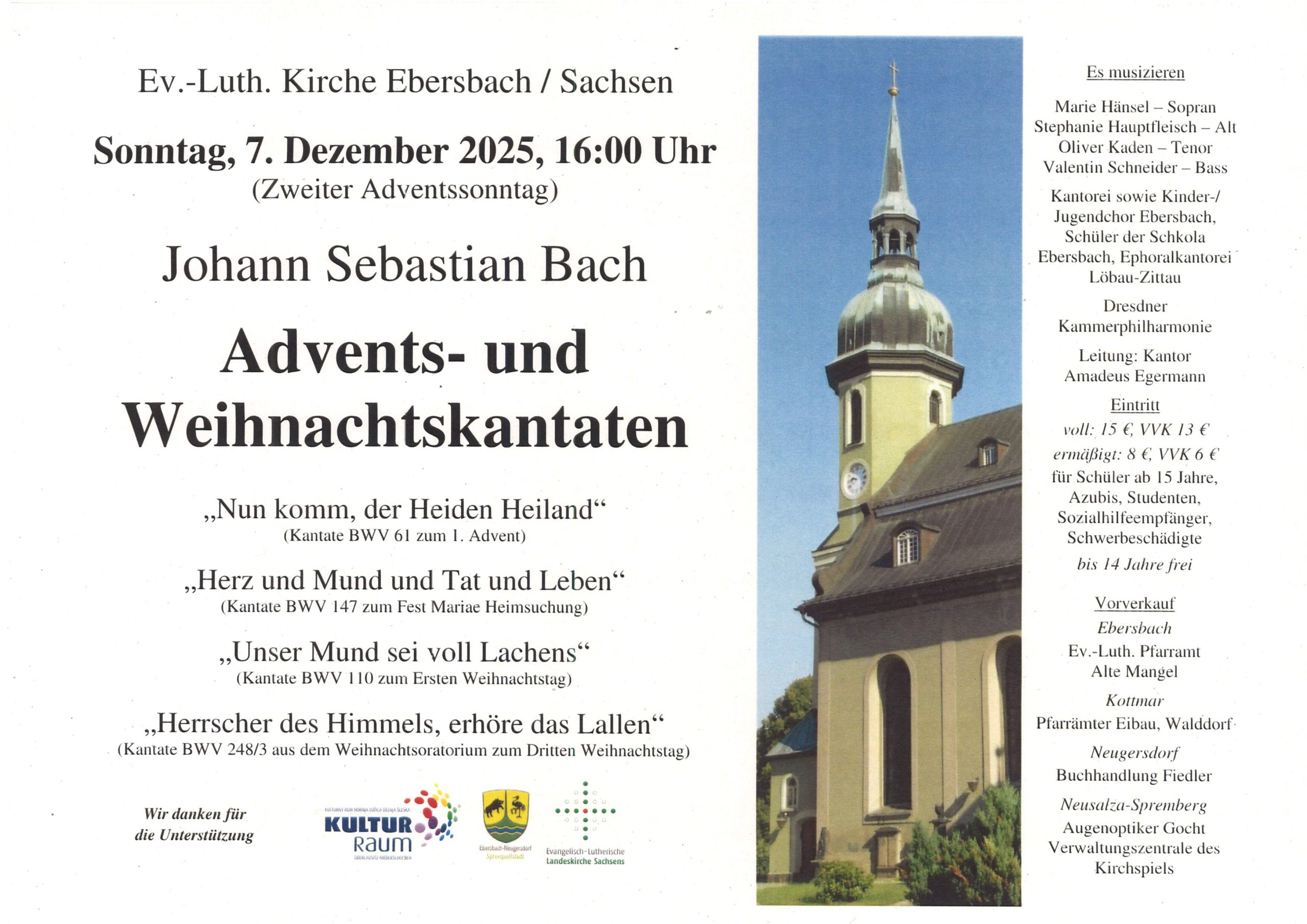 7. Dezember 2025, 16:00 Uhr, Kirche Ebersbach – Johann Sebastian Bach, Advents- und Weihnachtskantaten